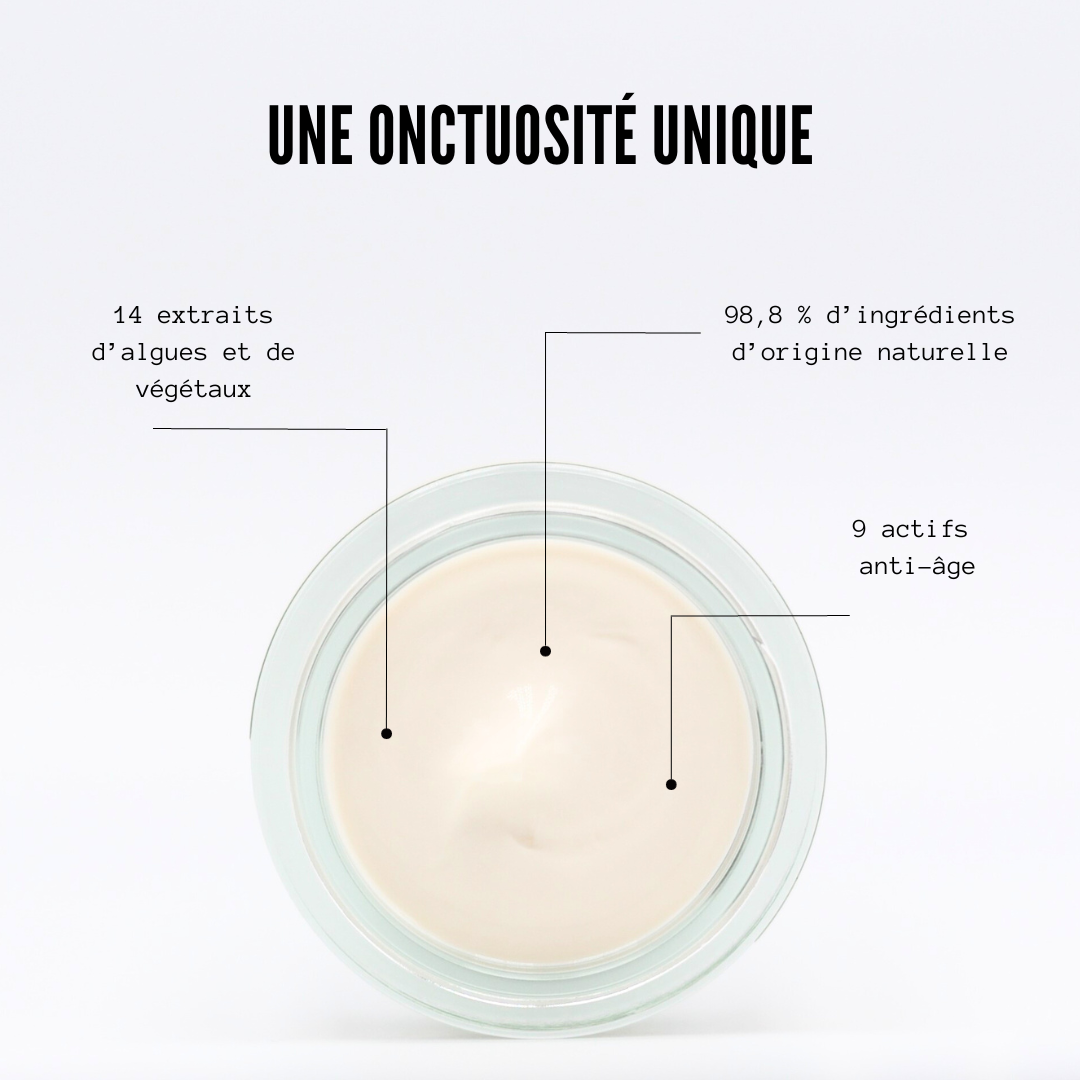 • 14 actifs d’origine végétale et marine dont 12 aux propriétés Anti-âge• Texture onctueuse• Une peau apaisée, assouplie, nourrie• Offre une expérience sensorielle• Certifié Bio - Made in France