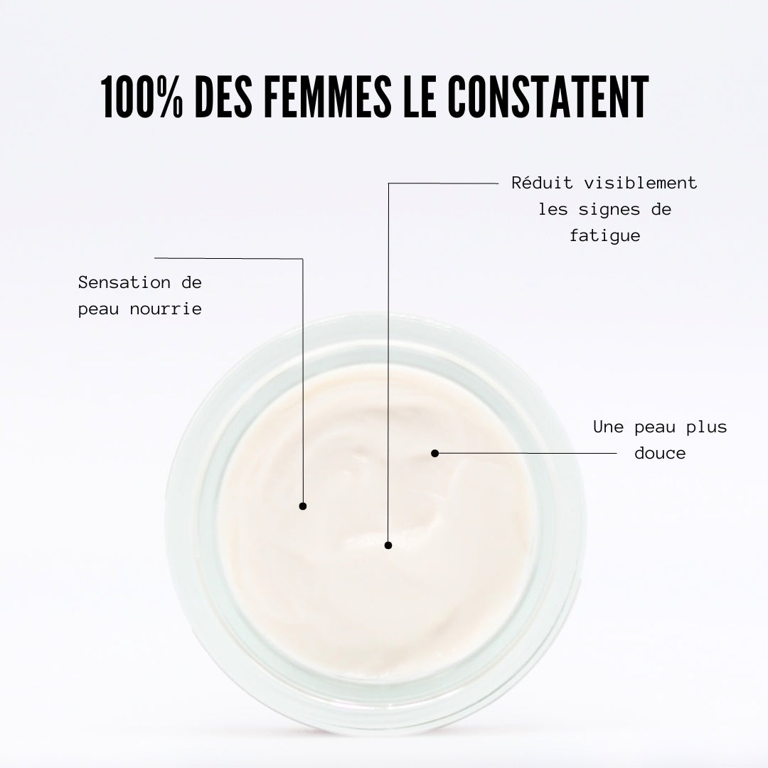 Quel plaisir d' appliquer cette crème au parfum envoûtant. Un moment de bien-être que je m'offre quotidiennement et un résultat réel : je n'ai plus d'appréhension à me montrer démaquillée tant ma peau respire la santé. Merci pour votre respect et précieuse attention envers votre clientèle. Votre gamme de produits fait désormais partie de ma routine. ❤️